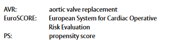 - The two propensity score-matched populations were similar in age (mean 57.4 ± 10.1 years) and risk profile (EuroSCORE II 2.7 ± 2.4%).