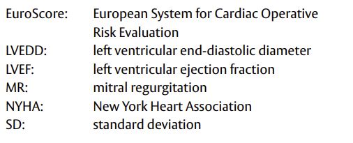 - The study included patients with secondary MR, left ventricular ejection fraction (LVEF) ≤50%, left ventricular end-diastolic diameter (LVEDD) ≥55 mm and tenting of the proximal or anterior mitral leaflets >10 mm.